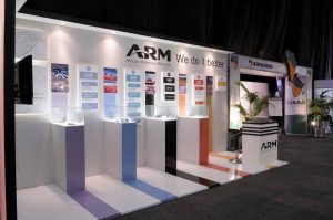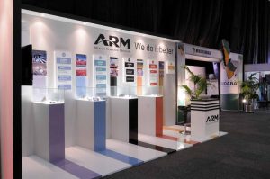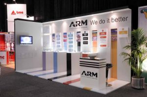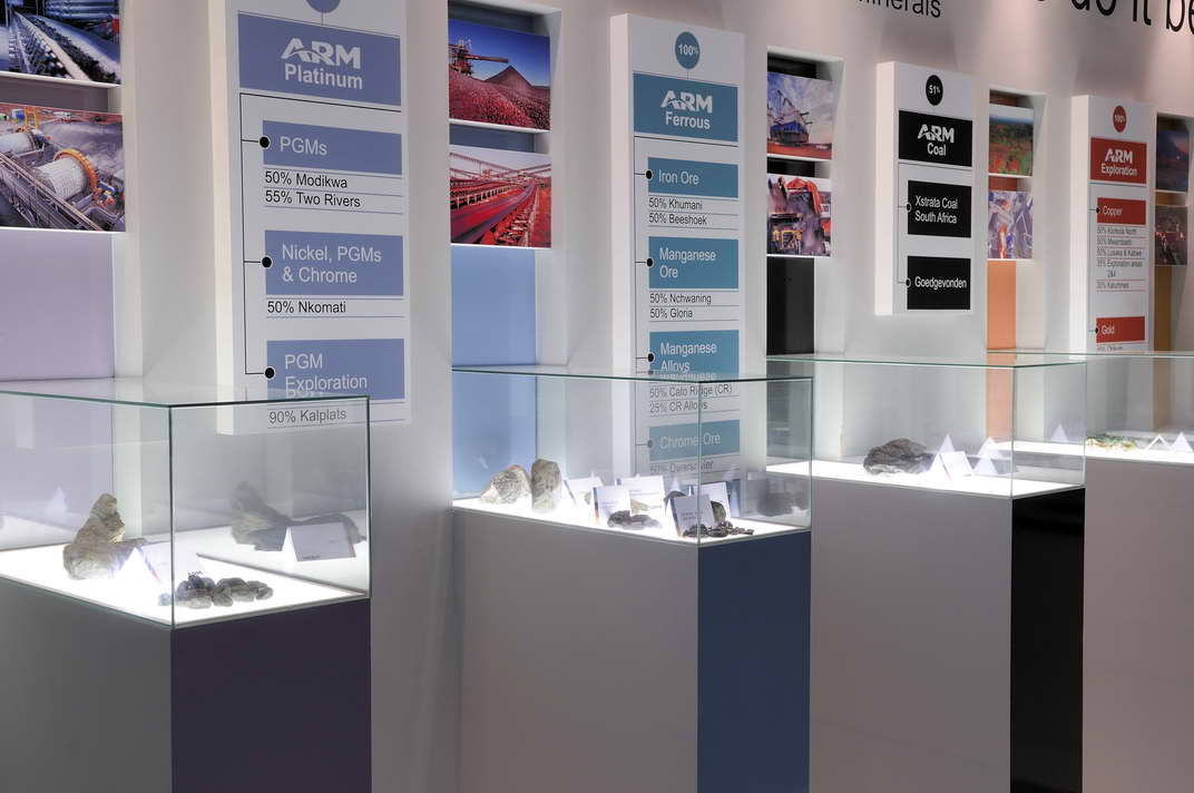 Der Stand wurde um ein lineares Ausstellungs-Konzept herum entworfen, das eine Reihe von beleuchteten Vitrinen enthielt, in denen physische Mineralproben auf klare und visuell ansprechende Weise präsentiert wurden. Jede Ausstellung wurde durch vertikale Informationstafeln ergänzt, die Daten, Bilder und Branding kombinierten, um die Operationen von ARM über mehrere Rohstoffe hinweg zu kommunizieren.