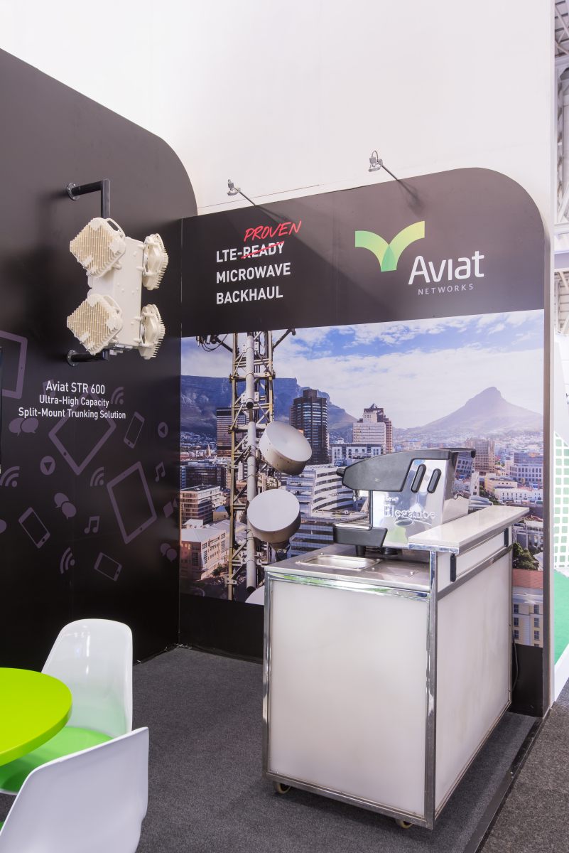 369 hat Messestände geliefert für Aviat Networks über mehrere Jahre hinweg bei AfricaCom, und unterstützt damit die fortgesetzte Präsenz der Marke als führender Anbieter von drahtlosen Transport- und Mikrowellen-Backhaul-Lösungen.
