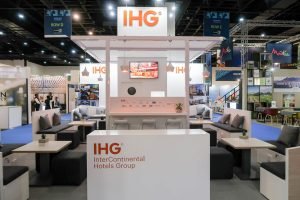 Die InterContinental Hotels Group PLC, informell InterContinental Hotels oder IHG, ist ein britisches multinationales Hotelunternehmen mit Hauptsitz in Denham, Großbritannien. Dieser Kunde benötigte eine Fläche von 9 x 9 m2 für die Tourismus Indaba. Stilvolle Holzverkleidungen, von Afrika inspirierte Grafiken und einheimische Blumen repräsentierten die Marke gut auf dem afrikanischen Markt.