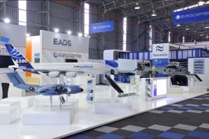 Dieser EADS Messestand demonstriert die Fähigkeit von 369, wirkungsvolle, präzise gefertigte Umgebungen für führende Marken aus den Bereichen Luft- und Raumfahrt sowie Verteidigung zu liefern. Der Stand wurde entwickelt, um Innovation und technische Exzellenz zu widerspiegeln, und kombiniert markante architektonische Elemente mit klarem Branding, um eine starke, professionelle Präsenz auf der Messe zu schaffen.