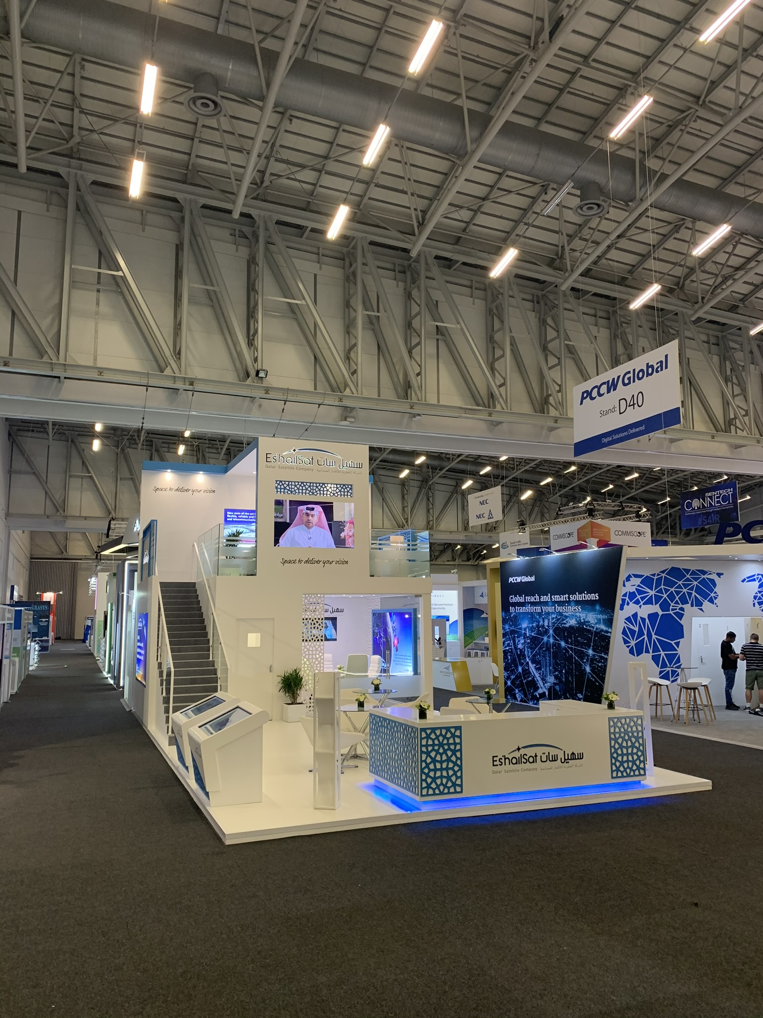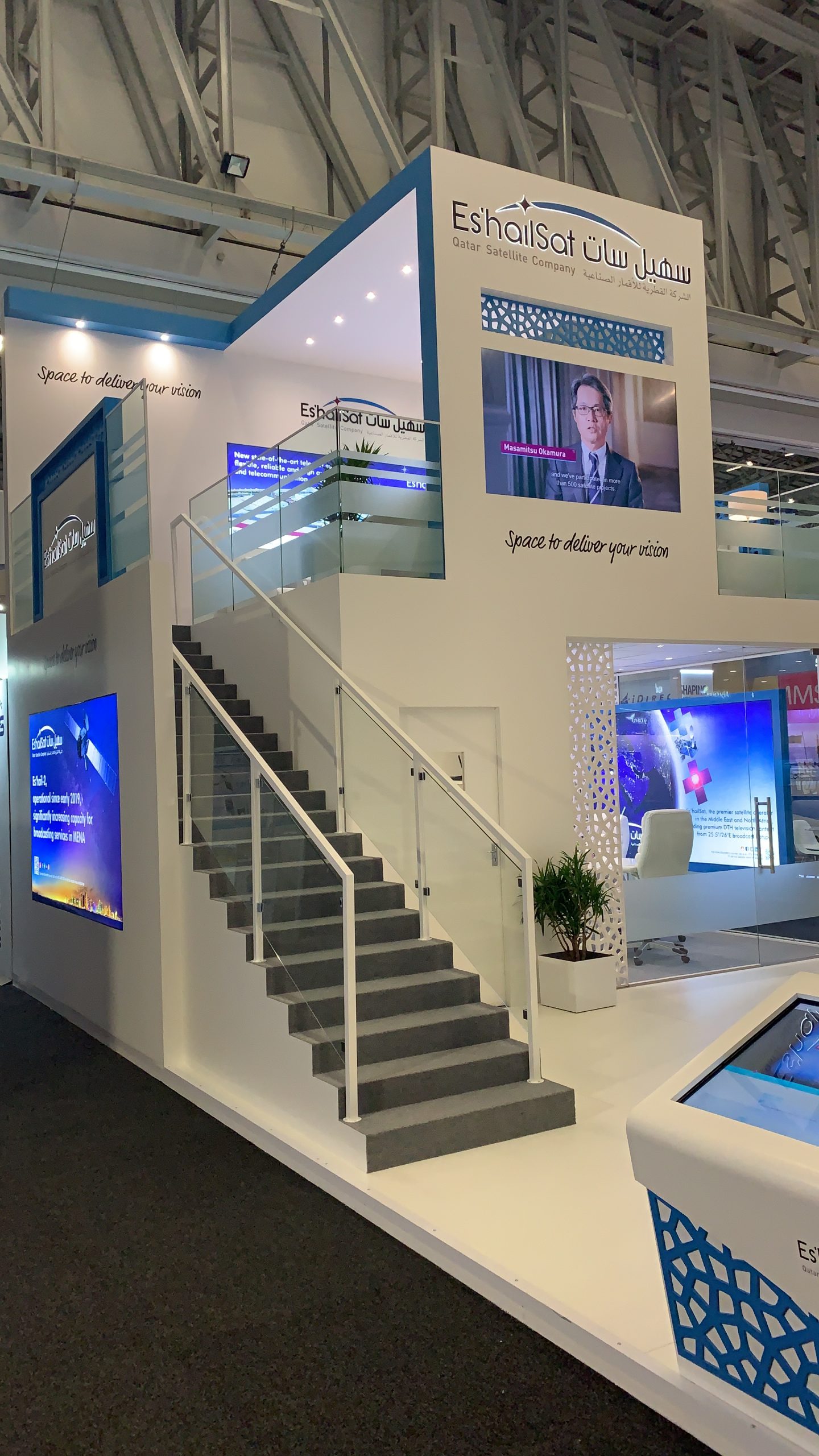 Der Ständer enthielt Hochwertige Oberflächen, präzise Details und integrierte Beleuchtung, im Einklang mit der Corporate Identity von Es’hailSat und internationalen Standards. Strukturelle Integrität, Einhaltung von Sicherheitsvorschriften und effiziente Bauzeiten waren entscheidende Bestandteile des Projekts, die alle spezifikationsgerecht geliefert wurden.