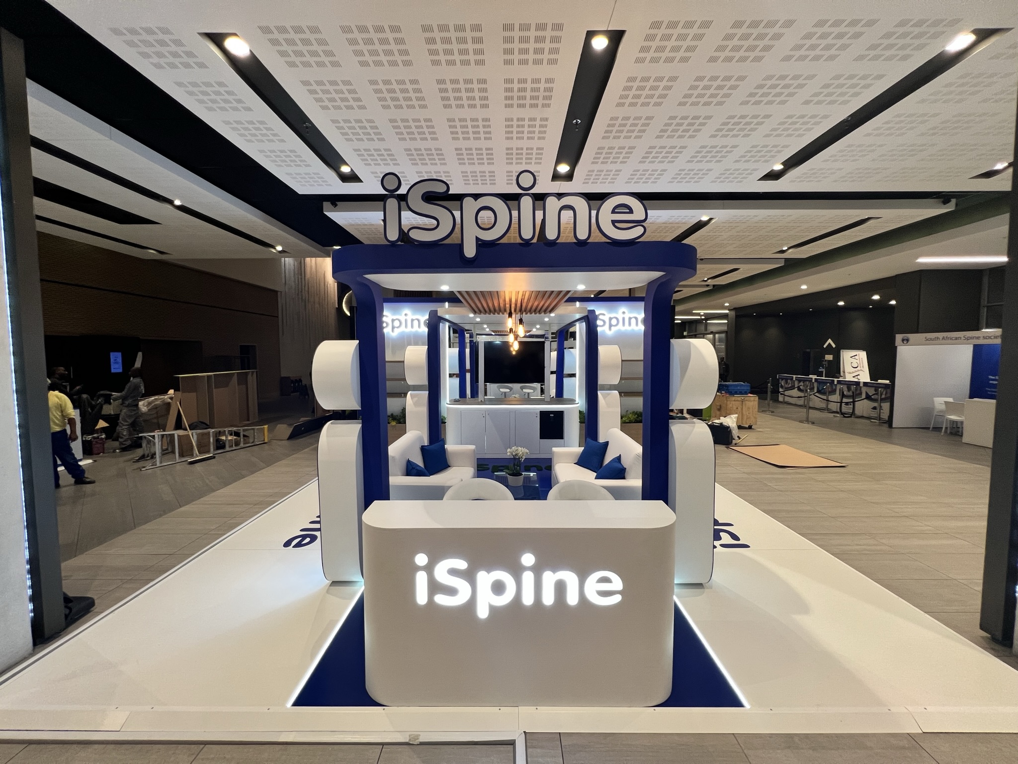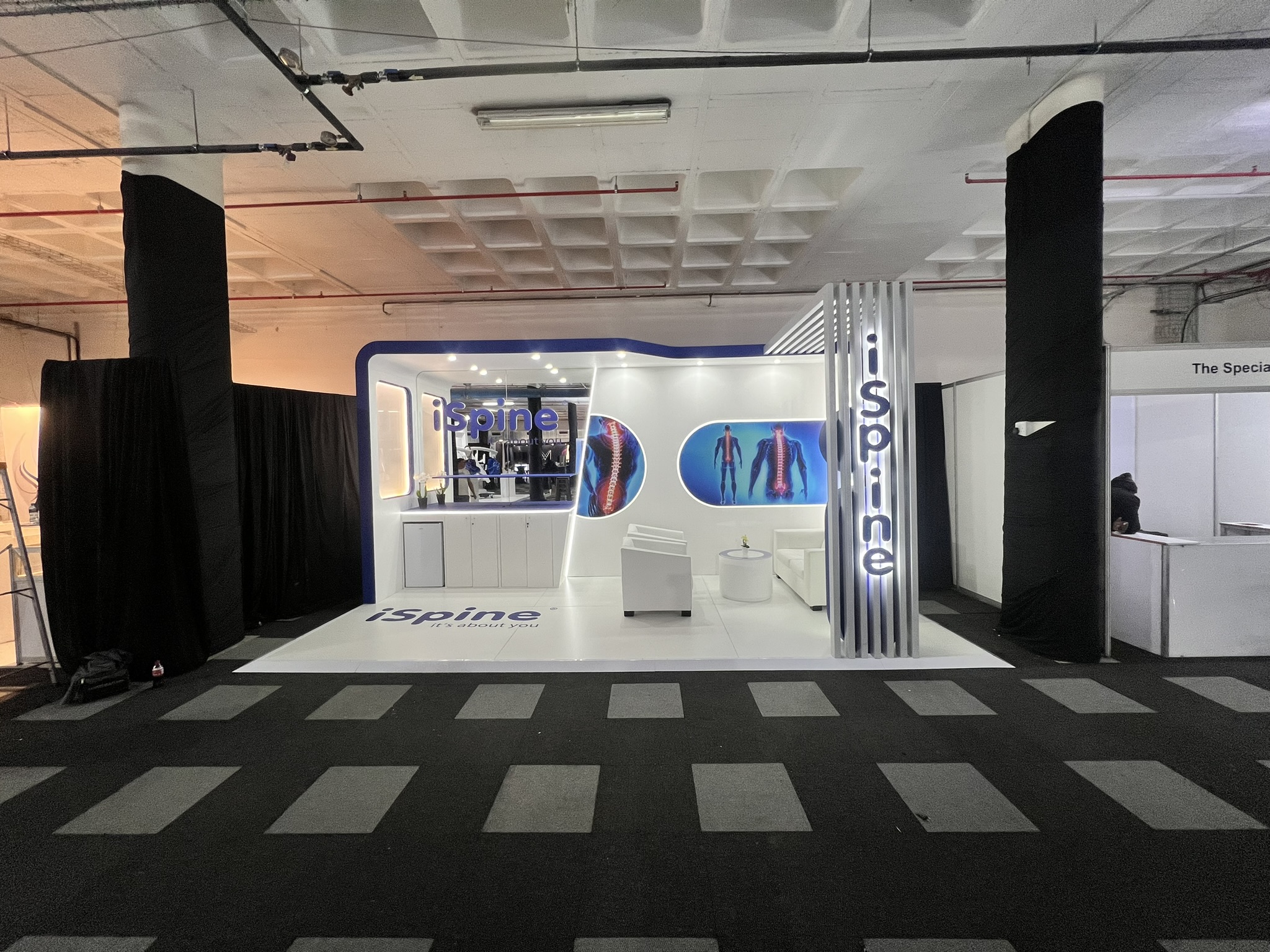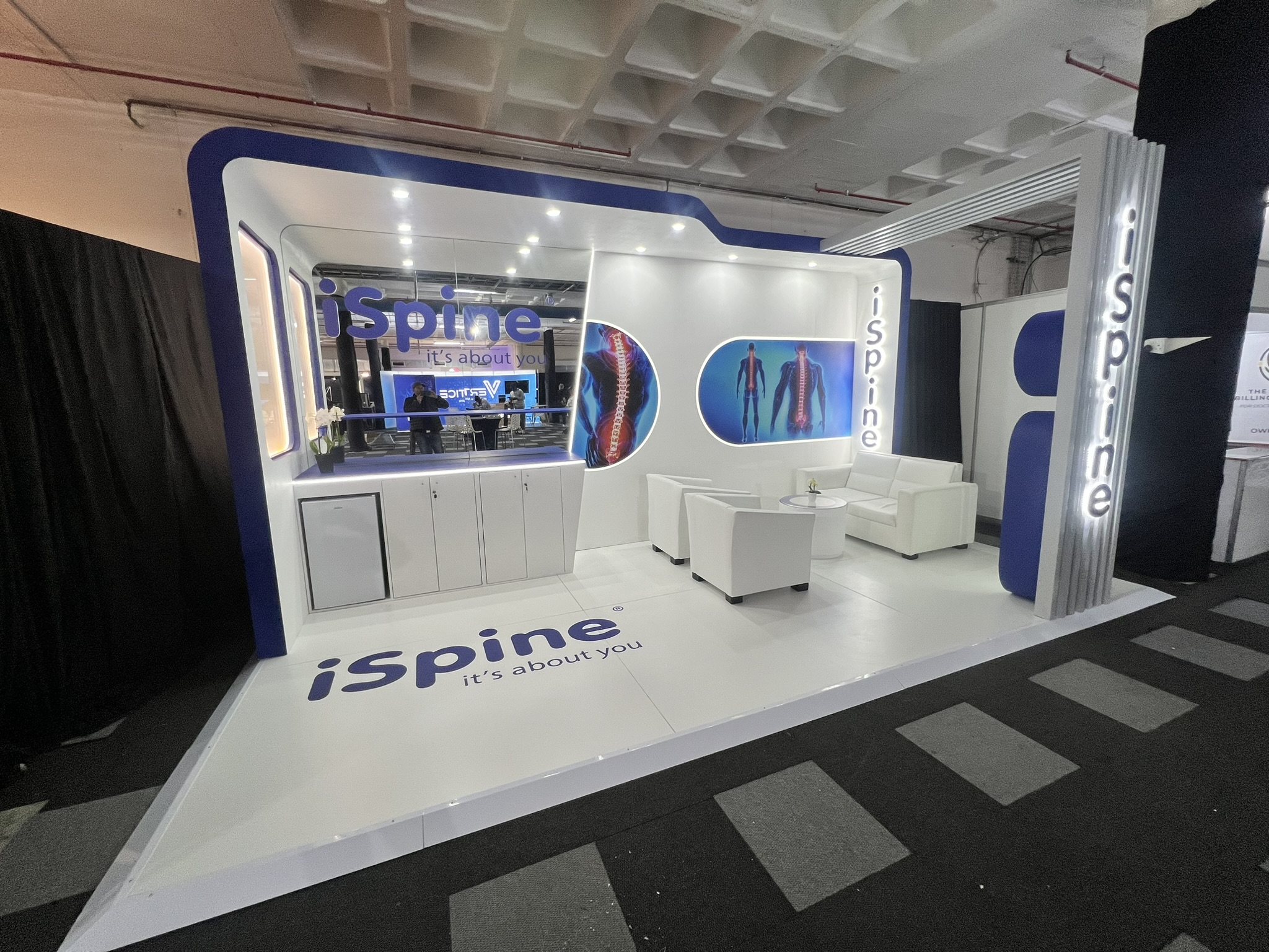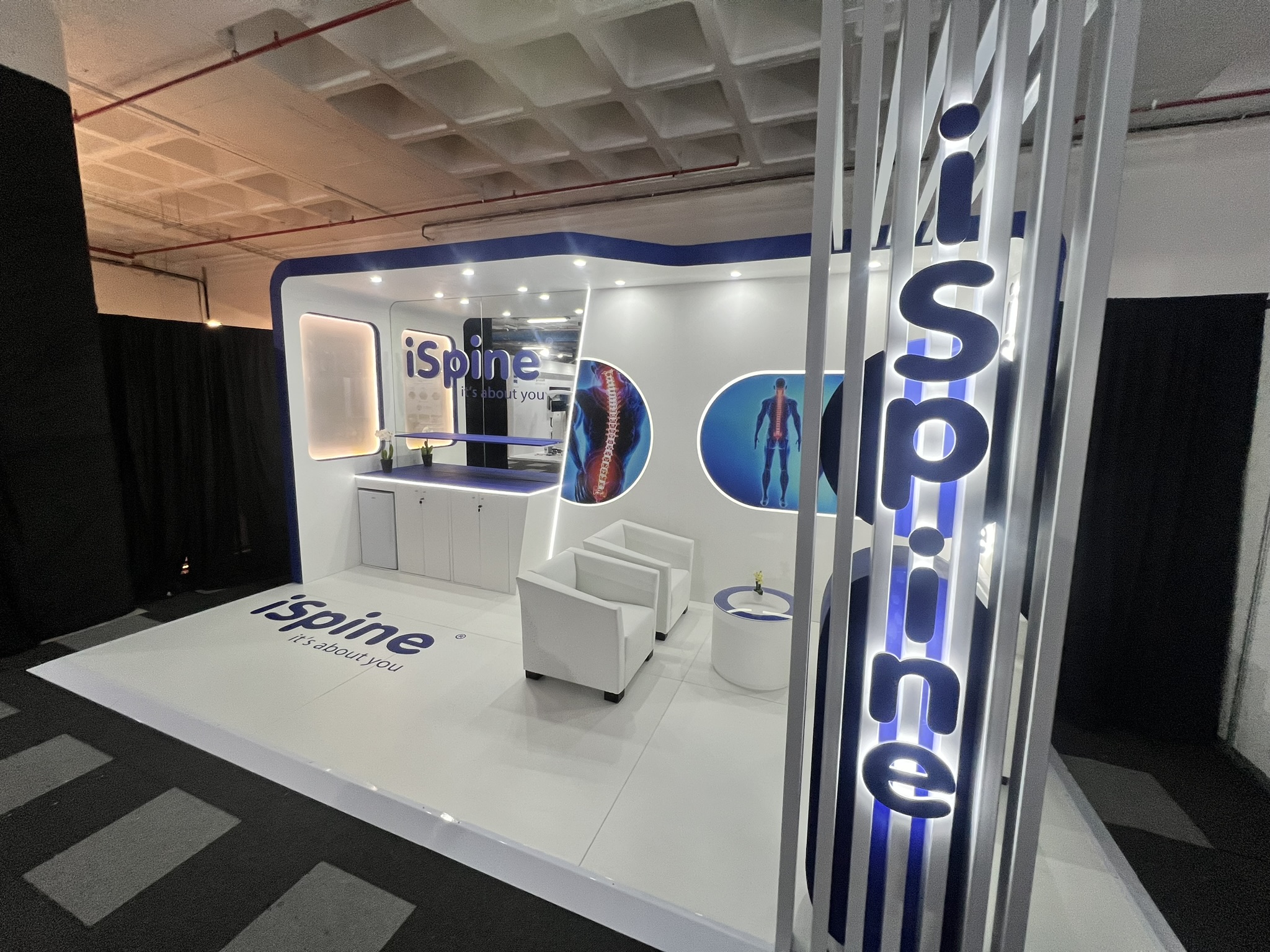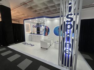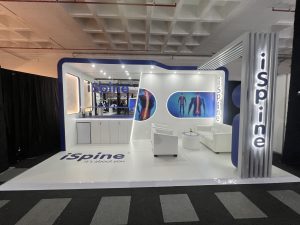 Dieser iSpine Messestand präsentiert die Fähigkeit von 369, saubere, hochwertige Umgebungen für den Medizin- und Gesundheitssektor zu schaffen. Der Stand wurde entworfen, um klinische Präzision mit einer einladenden, patientenorientierten Ästhetik zu verbinden und schafft einen ruhigen und professionellen Raum, der mit der Markenidentität von iSpine übereinstimmt.