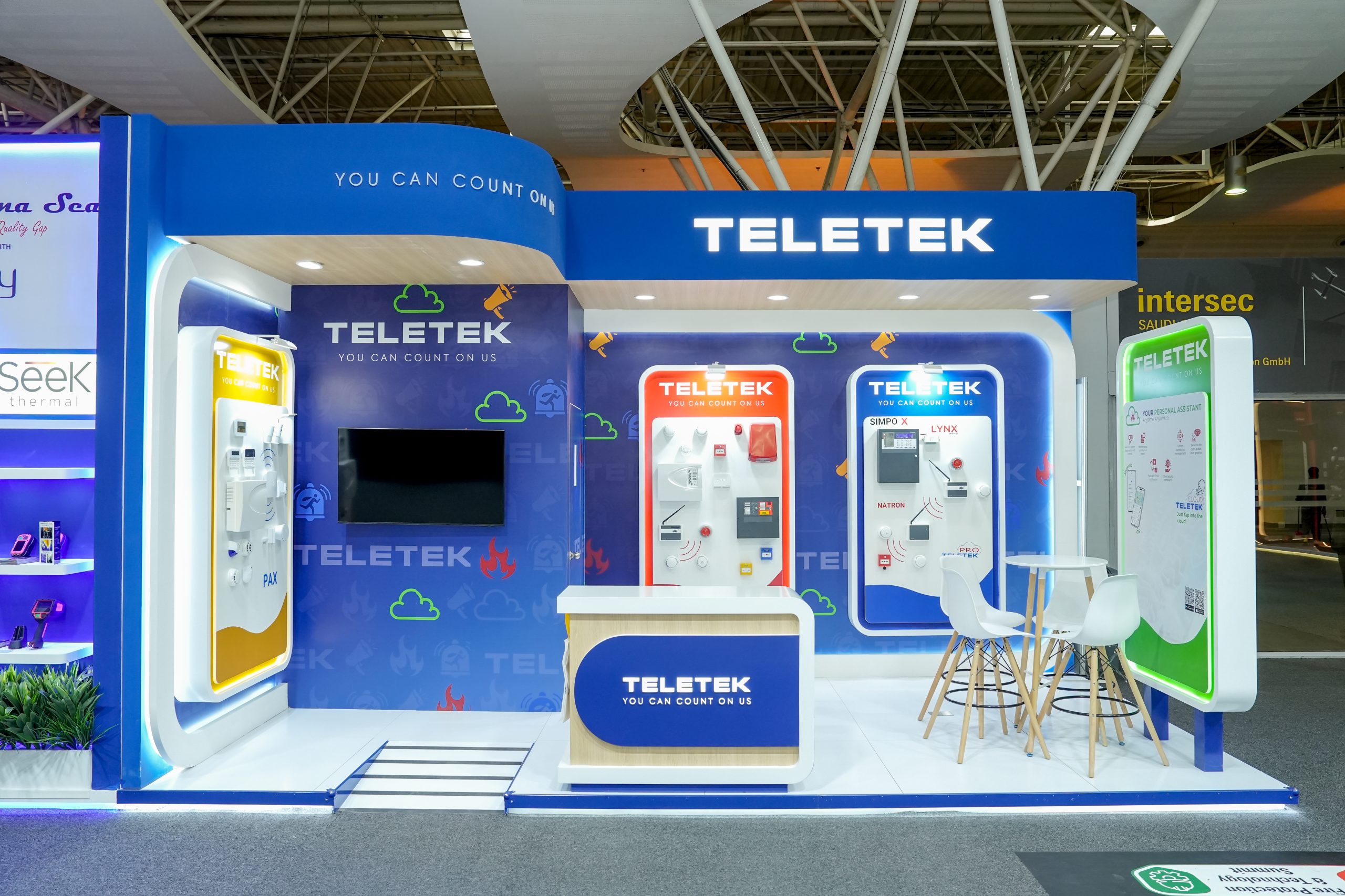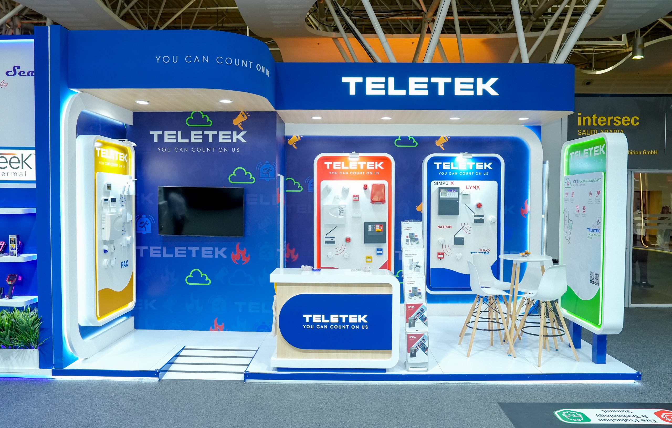 Diese individuell gestalteter Messestand für Teletex an Intersec KSA 2025 wurde geschaffen, um eine saubere, technologieorientierte Markenpräsenz auf einer der führenden Sicherheitsausstellungen der Region zu erzielen.